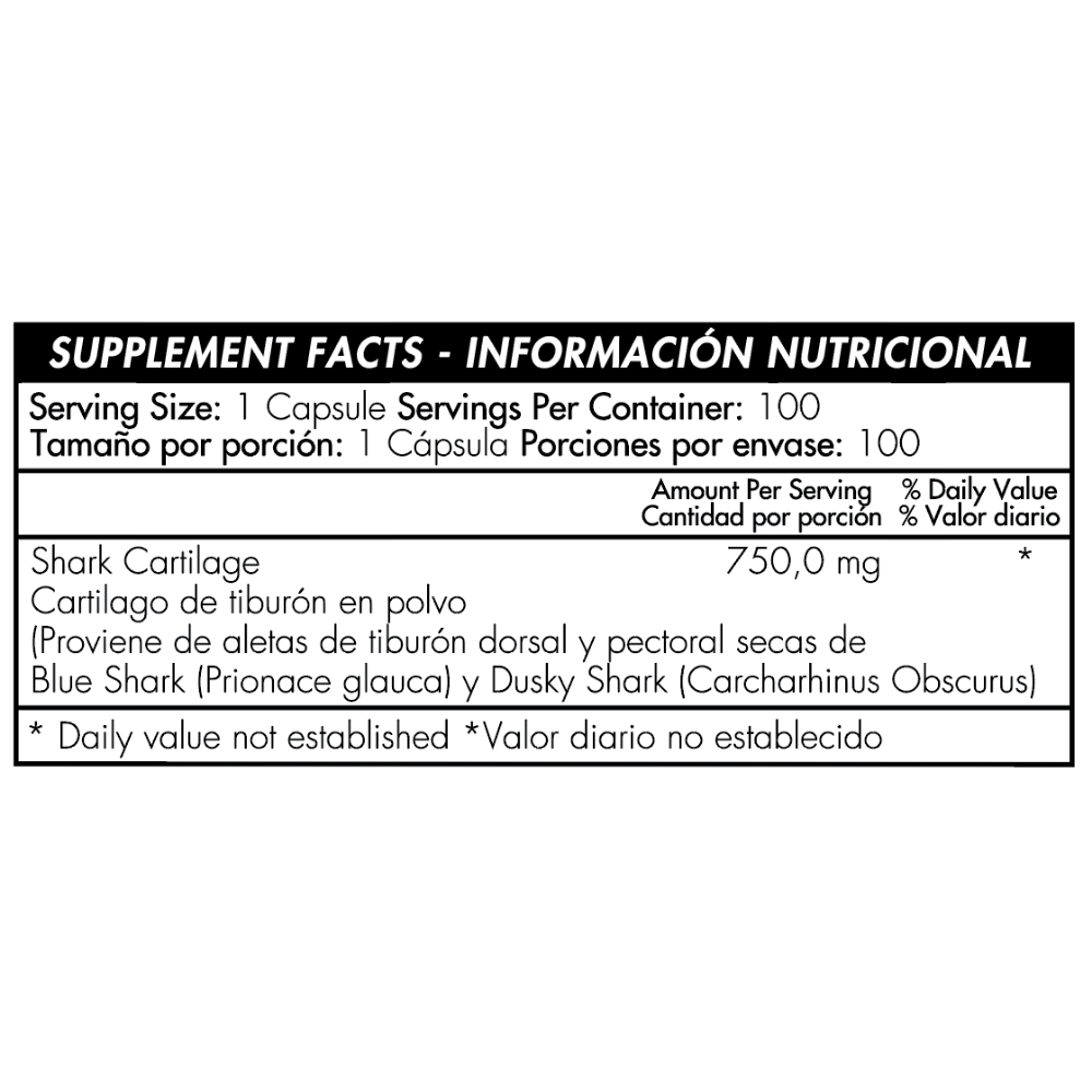 Shark Cartilage 750mg 100 Cápsulas Healthy América Shark Cartilage 750mg 100 Cápsulas Healthy América