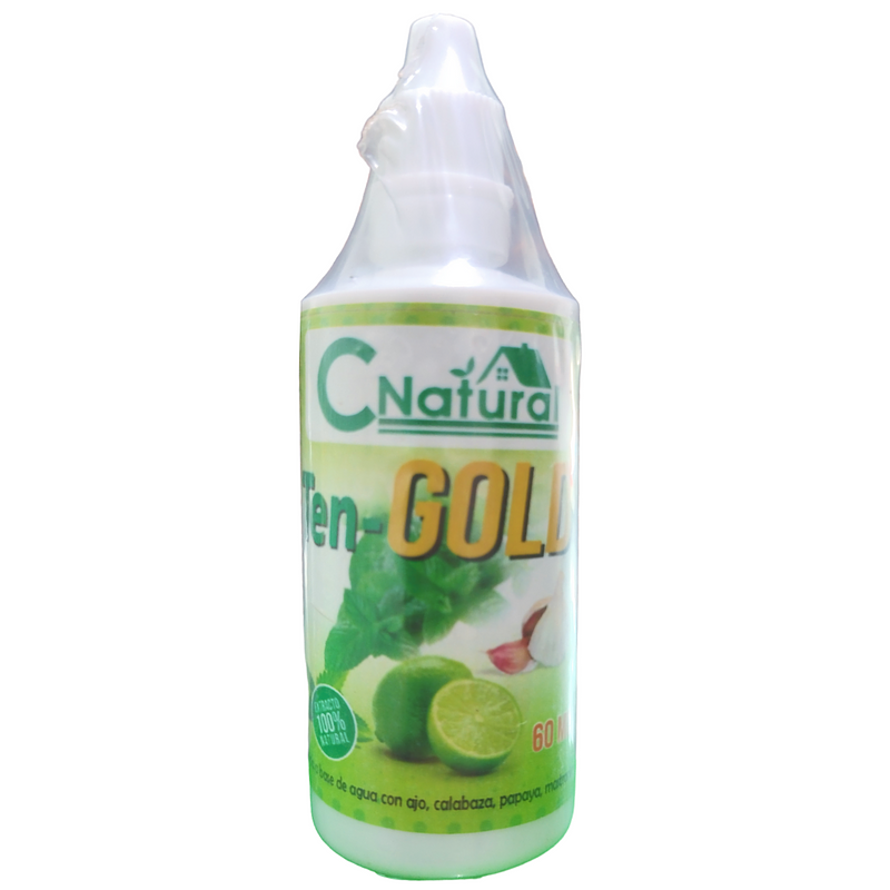 Ten - Gold : bebida a base de agua, ajo, mastranto, limón entre otro indicado, para tratar problemas de la presión arterial, hipertensión y regular problemas en la sangre.