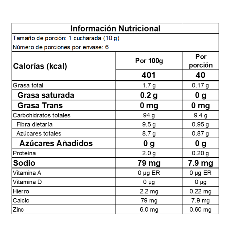 Tamaño de porción: 1 cucharada (10 g