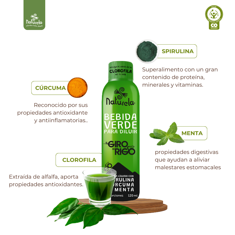 ✔ Purifica el organismo gracias a la clorofila. ✔ Favorece la digestión y la eliminación de toxinas. ✔ Aporta antioxidantes que protegen el cuerpo. ✔ Brinda energía natural con superalimentos. ✔ Refuerza el sistema inmune con vitaminas y minerales.