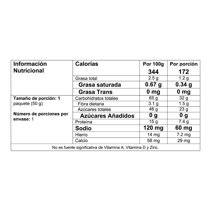 No es fuente significativa de Vitamina A, Vitamina D y Zinc.