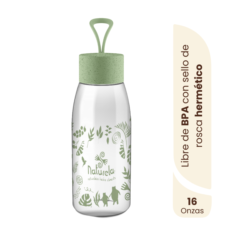 Lleva tu bebida preferida a donde quieras con nuestra NUEVA BOTELLA MINI KUL NATURELA, con capacidad de almacenar 16 Oz de tu bebida preferida, con sello de rosca hermético y una tapamanija práctica para llevarla a cualquier lugar. No es tóxico y está libre de BPA.