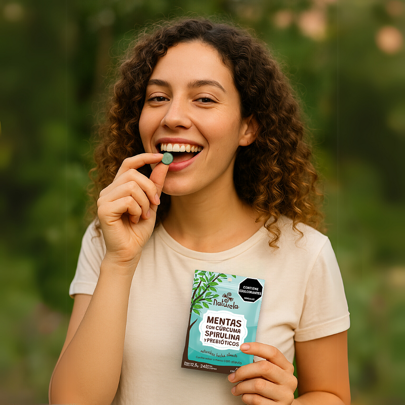 ¡Prueba las Mentas Con Cúrcuma Spirulina Y Prebióticos hoy y disfruta de los beneficios de la spirulina en cada bocado!
