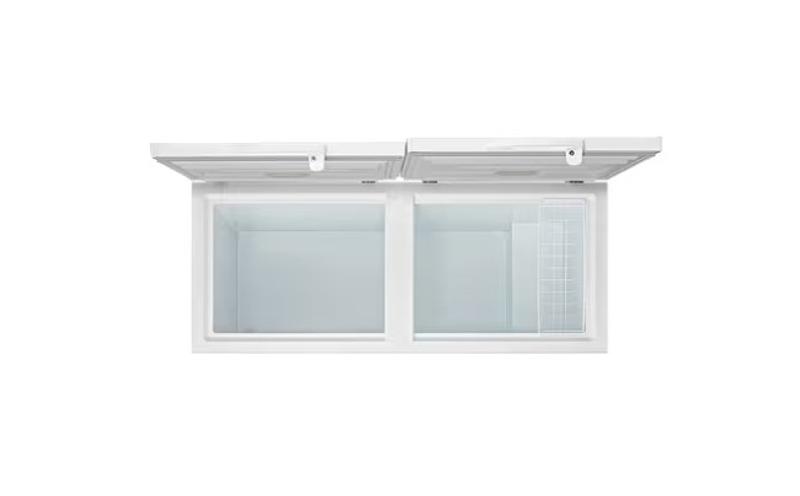 Este congelador Kalley de dos puertas cuenta con control de temperatura externo, sistema de seguridad, iluminación LED, 3 canastillas removibles de alambre y drenaje de limpieza.