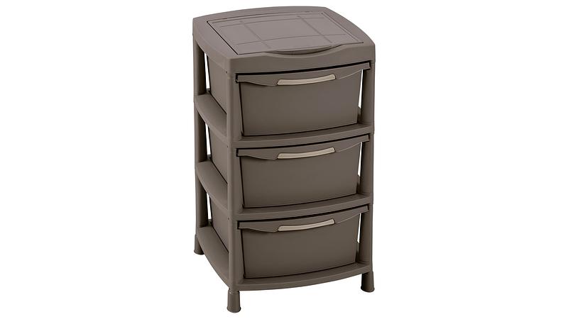 Mueble organizador practico multifuncional. Inclye: tres gavetes grandes seguros con resistencia de 25 kg, en la parte superior del mueble, un tapa organizadora con compartimentos para clasificar, 4 tacones y 2 rodachinas.