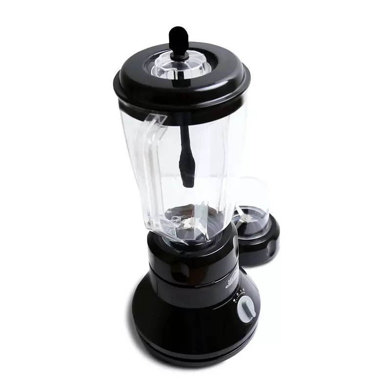 La licuadora incluye picatodo con cuchillas independientes para preparar alimentos sin mezclar sabores, cuenta con vaso plástico con capacidad de 2 litros resistente a golpes o caídas.