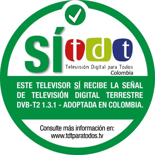 Este televisor es compatible con el estándar DVB-T2 adoptado para Televisión Digital Terrestre - TDT en Colombia, por tanto puede recibir señal de televisión abierta. Conozca mas sobre la TDT