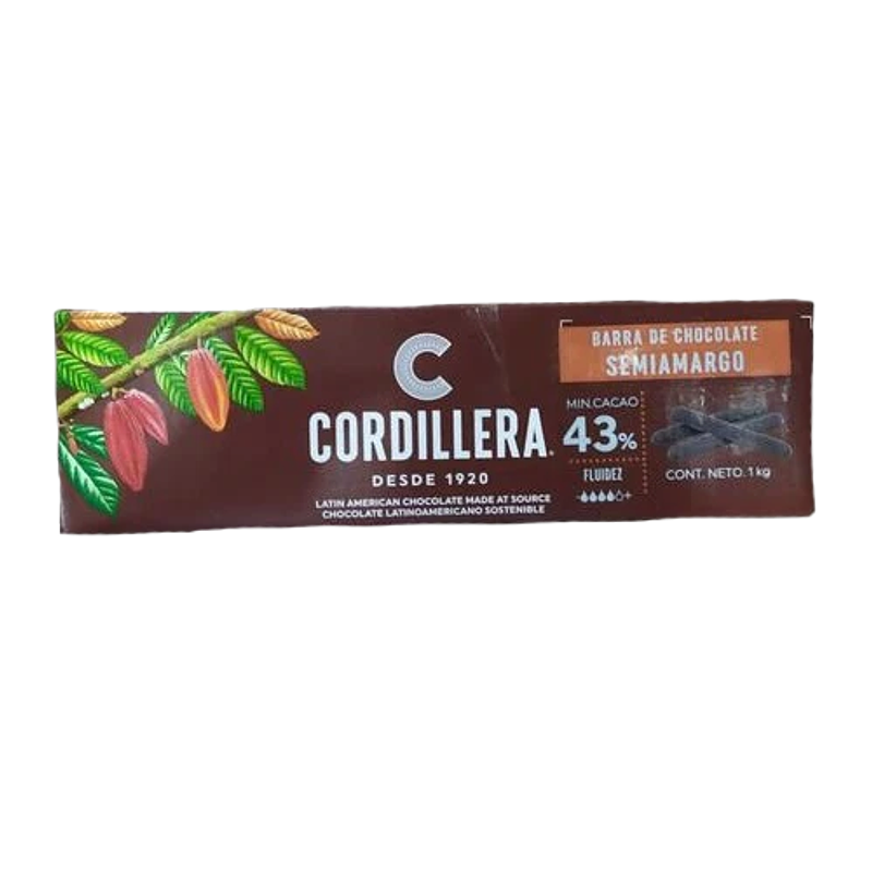La Barra de Chocolate CORDILLERA 43% en presentación de 12 paquetes x 1kg es perfecta para tus creaciones de repostería