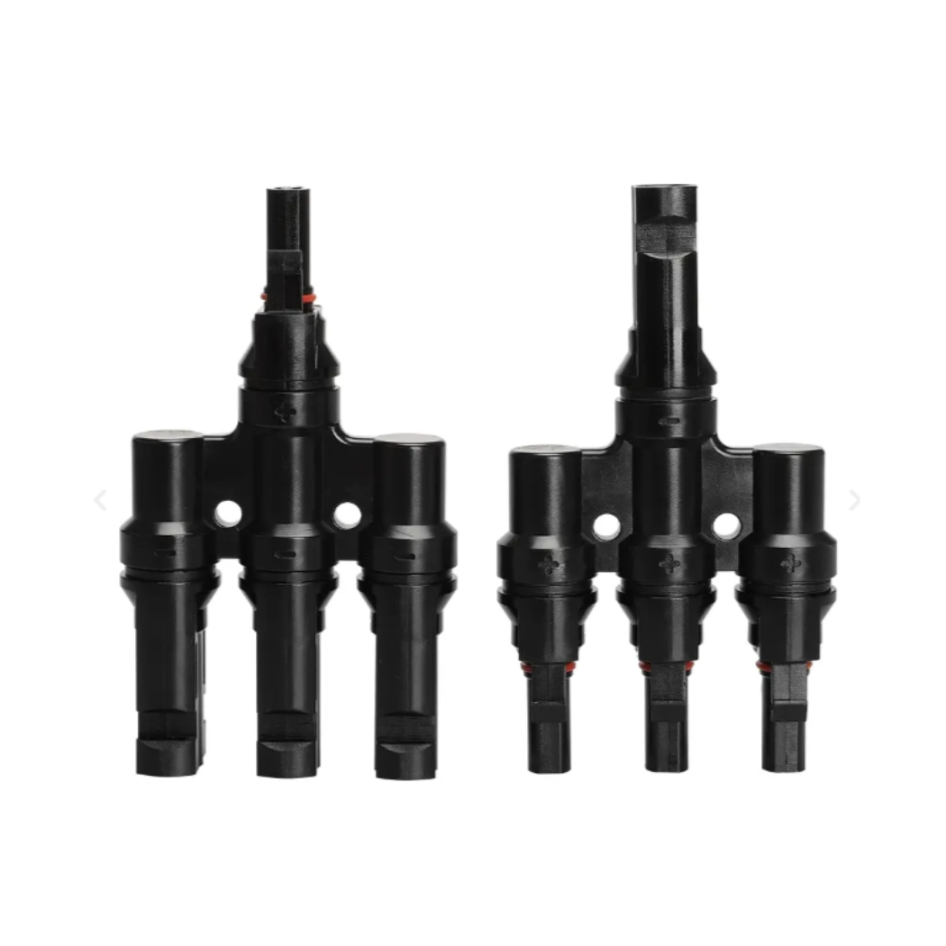 Un conector MC4 Tipo Y 3 A 1 rígido es un tipo específico de conector MC4 que permite la conexión de tres cables en un extremo y un solo cable en el otro extremo. Este tipo de conector es útil cuando se necesita conectar múltiples paneles solares en un solo punto o cuando se requiere ramificar la conexión de un solo panel a múltiples destinos. Fácil de usar y seguro para hacer que la conexión de contacto eléctrico sea más firme.