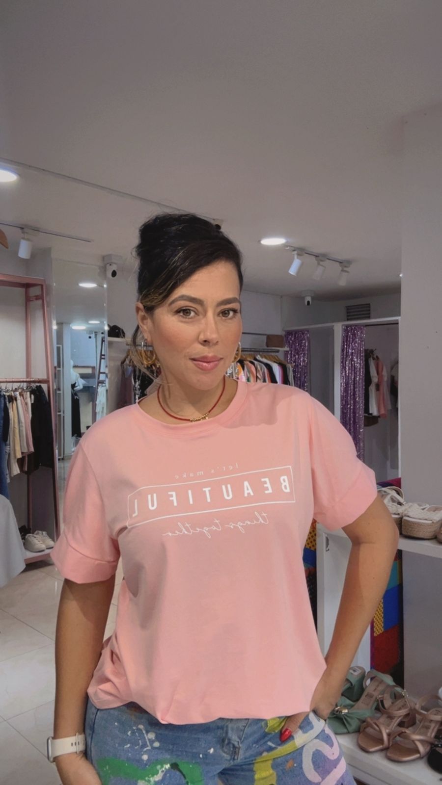 Camiseta Rosa - Letras Estampadas