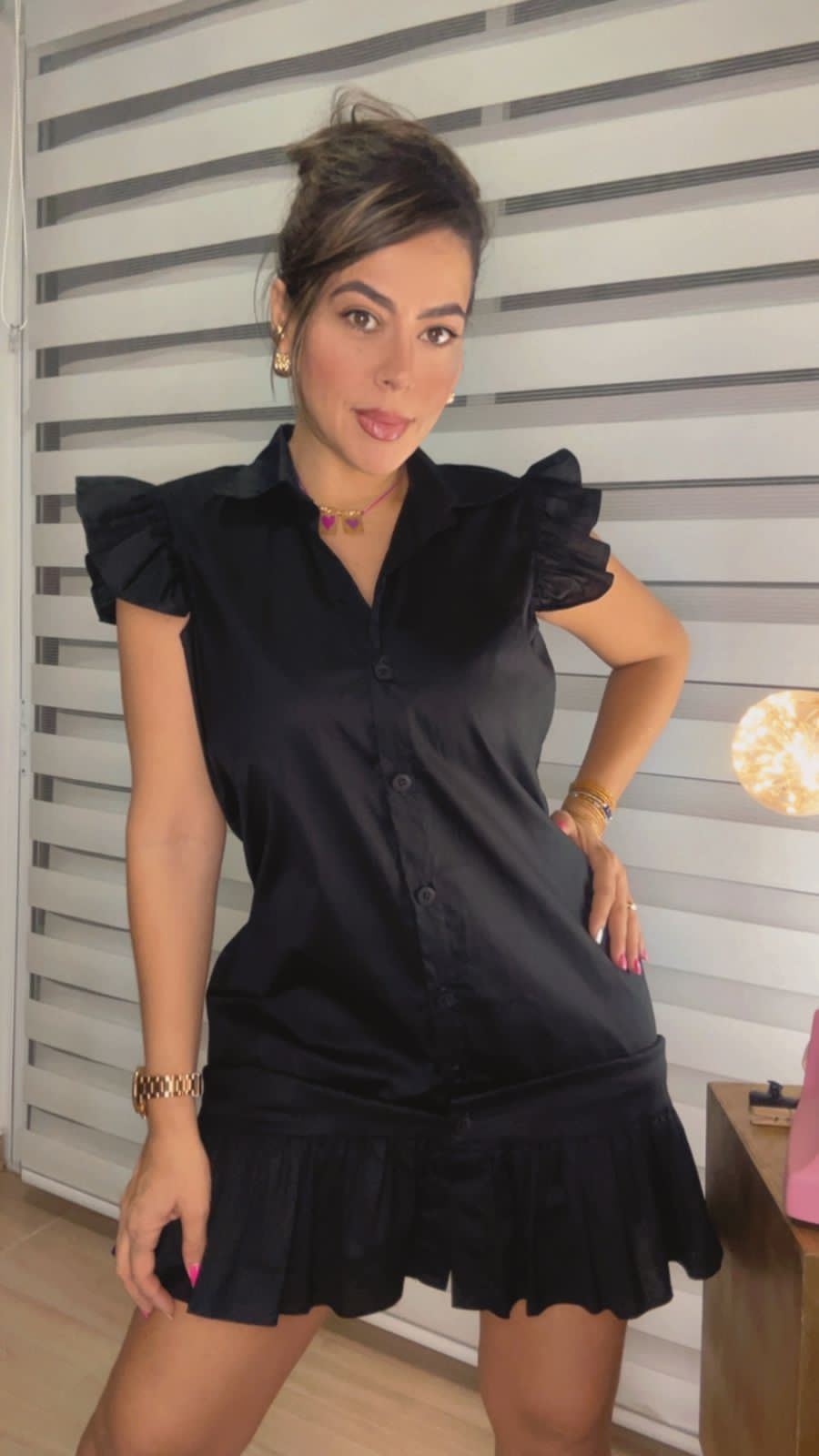 Vestido negro corto, un estilo diferente y hermoso, su diseño lo hace único, elaborado en tela popelina.